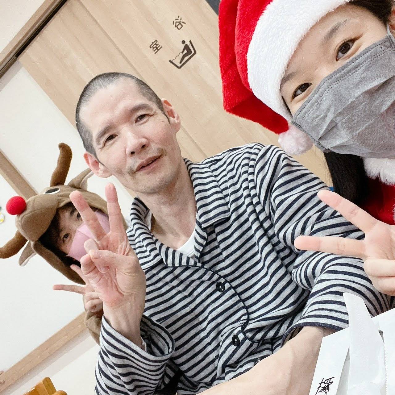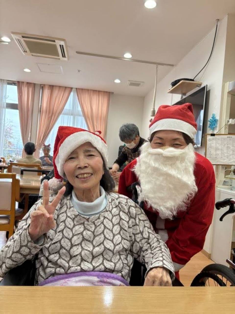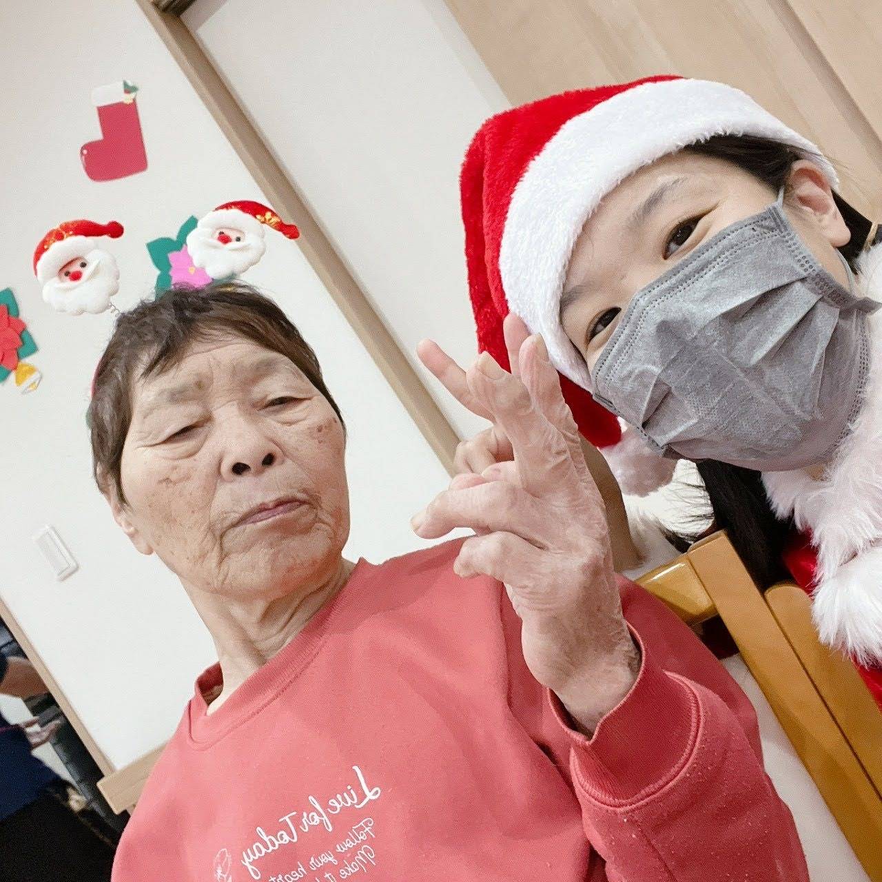 スタッフがサンタさんやトナカイさんになり!利用者の方も被り物をかぶって下さいました!