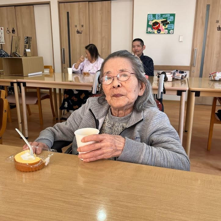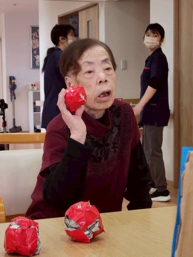豆まきの後は、豆の代わりにデザート(ロールケーキ)を楽しまれていました!!