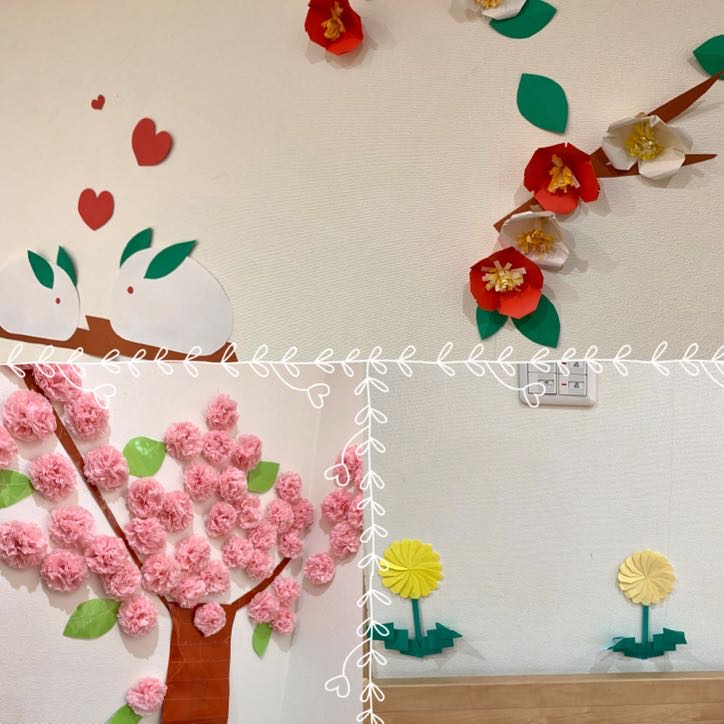 利用者様と共同制作された飾りもあり、施設内でも春を感じられるよう工夫をされています!!